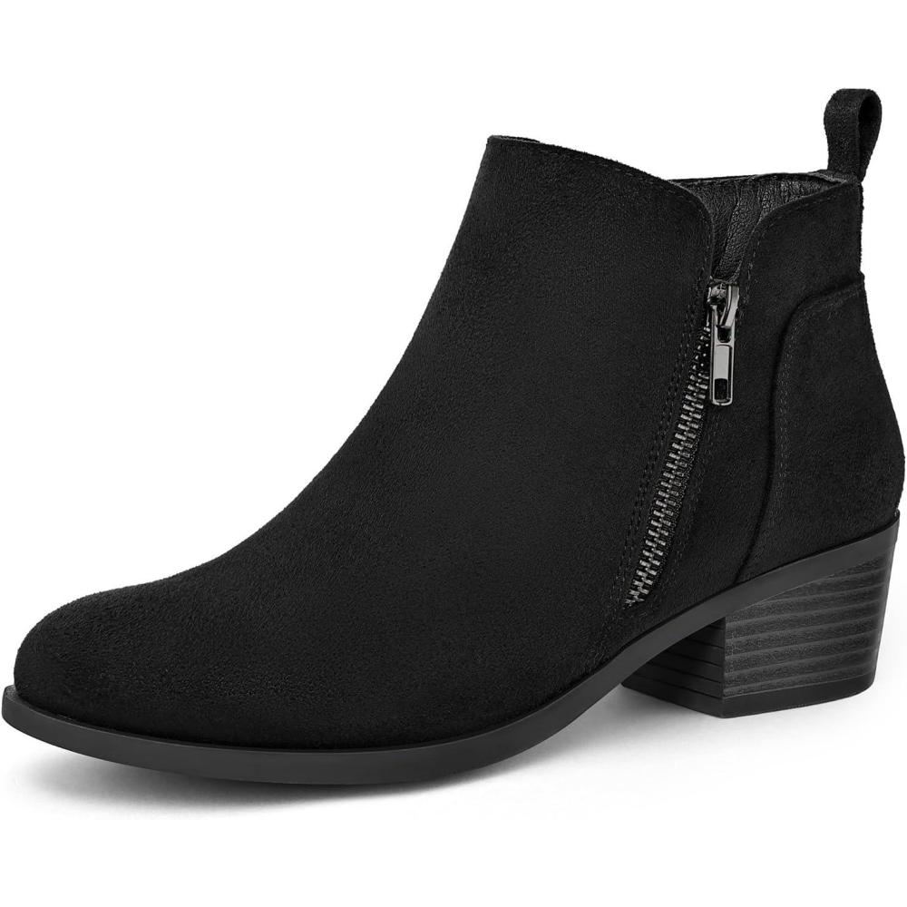 imagemysoft Womens Ankle Boots Low Chunky Heel Round Toe Casual Comfortable Short Booties with Side ZipperBlack Suede