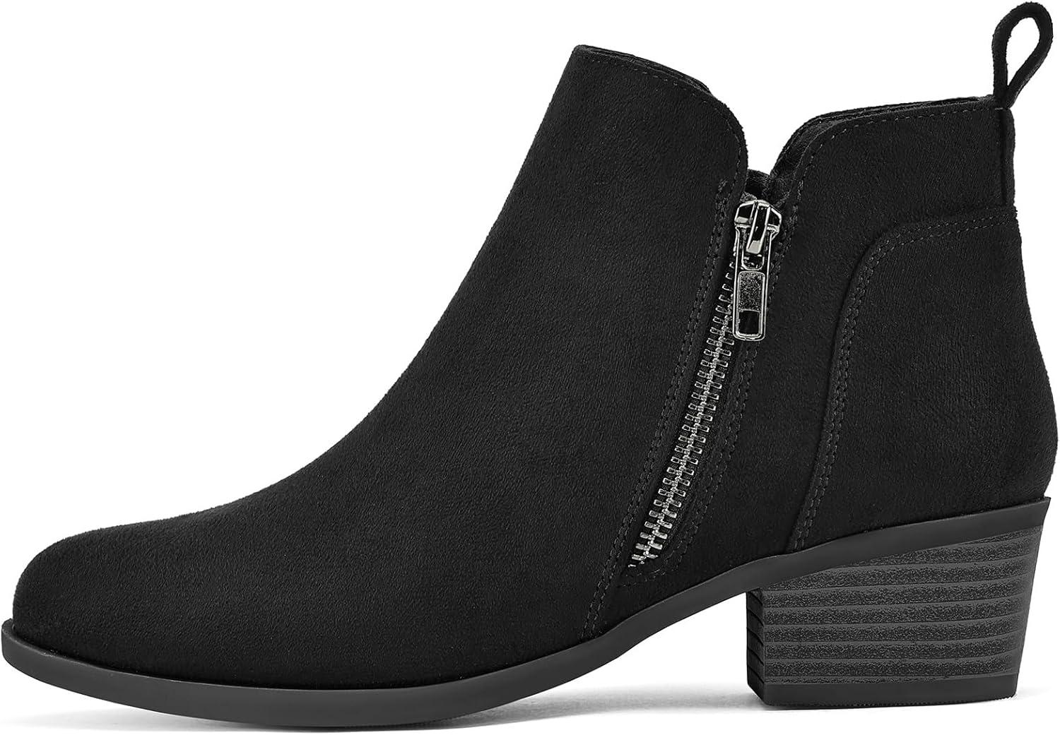 mysoft Women’s Ankle Boots Low Chunky Heel Round Toe Casual Comfortable Short Booties with Side Zipper(Blakc Pu)