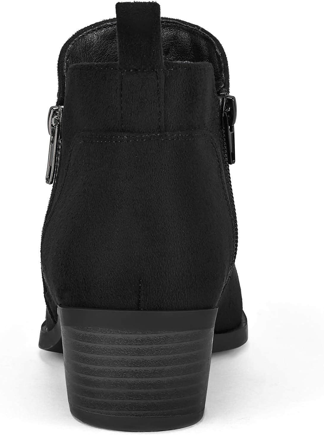 mysoft Women's Ankle Boots Low Chunky Heel Round Toe Casual Comfortable Short Booties with Side Zipper(Black Suede)