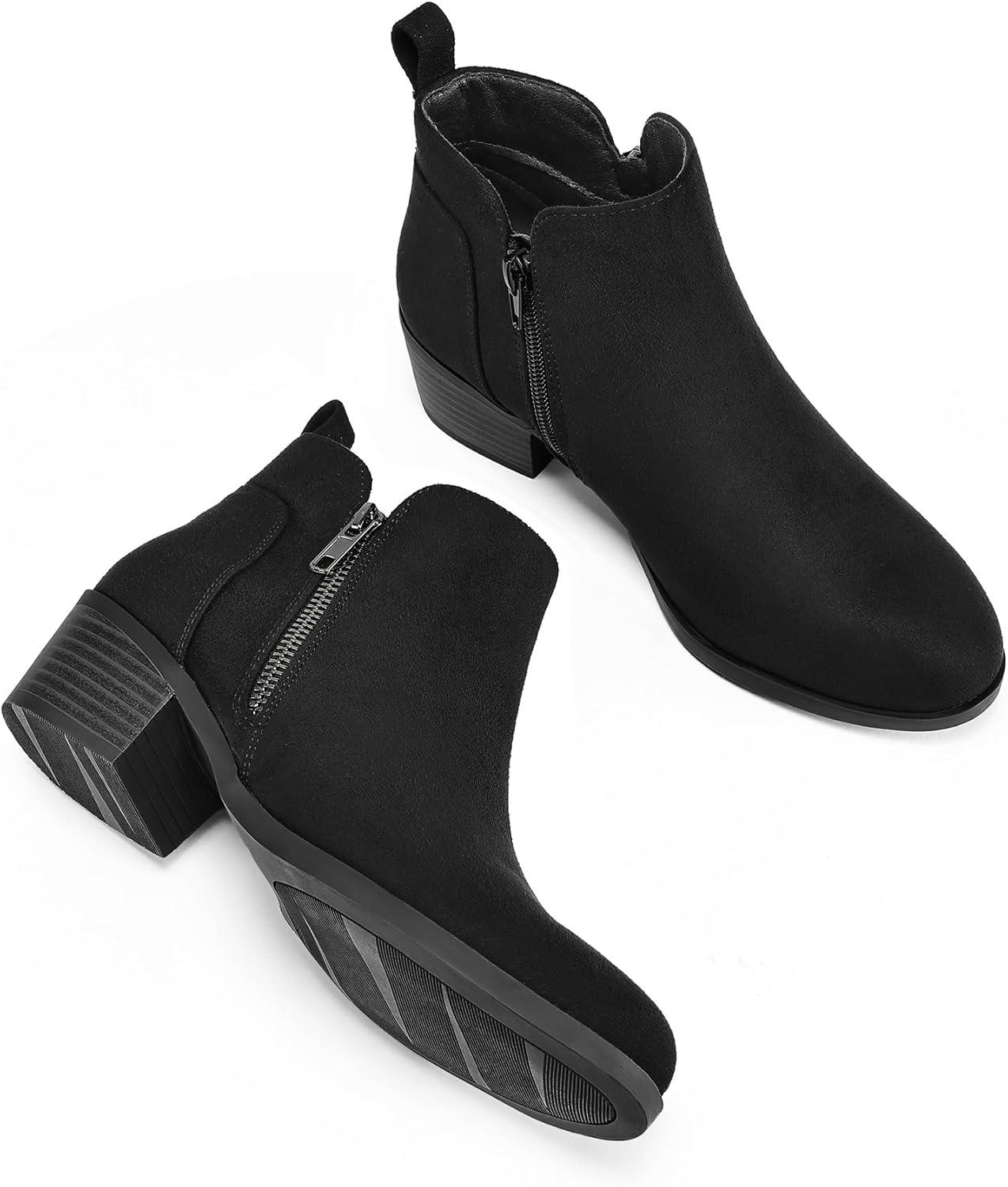 mysoft Women’s Ankle Boots Low Chunky Heel Round Toe Casual Comfortable Short Booties with Side Zipper(Black Suede)