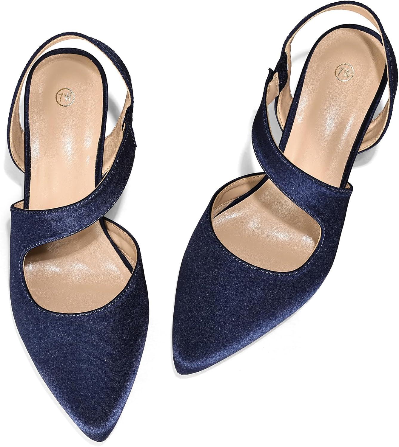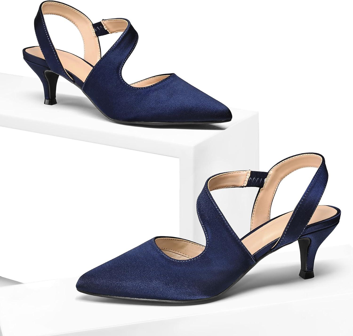 mysoft Women’s Dress Shoes Low Heels 2 inch Kitten Pumps Slingback Wedding Party Medium/Wide Width Shoes(Navy Satin)