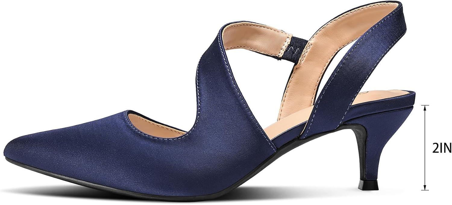 mysoft Women's Dress Shoes Low Heels 2 inch Kitten Pumps Slingback Wedding Party Medium/Wide Width Shoes(Navy Satin)
