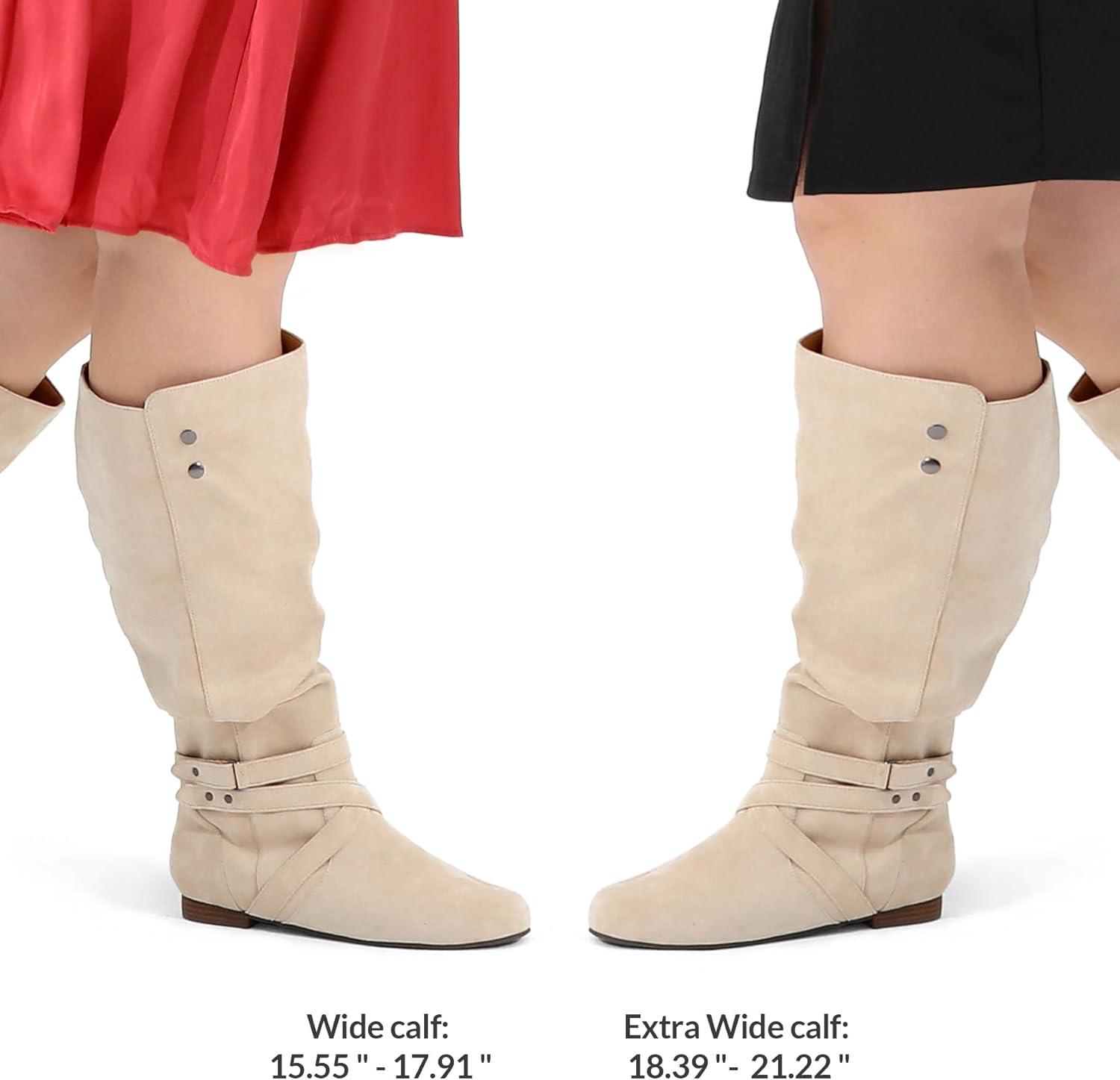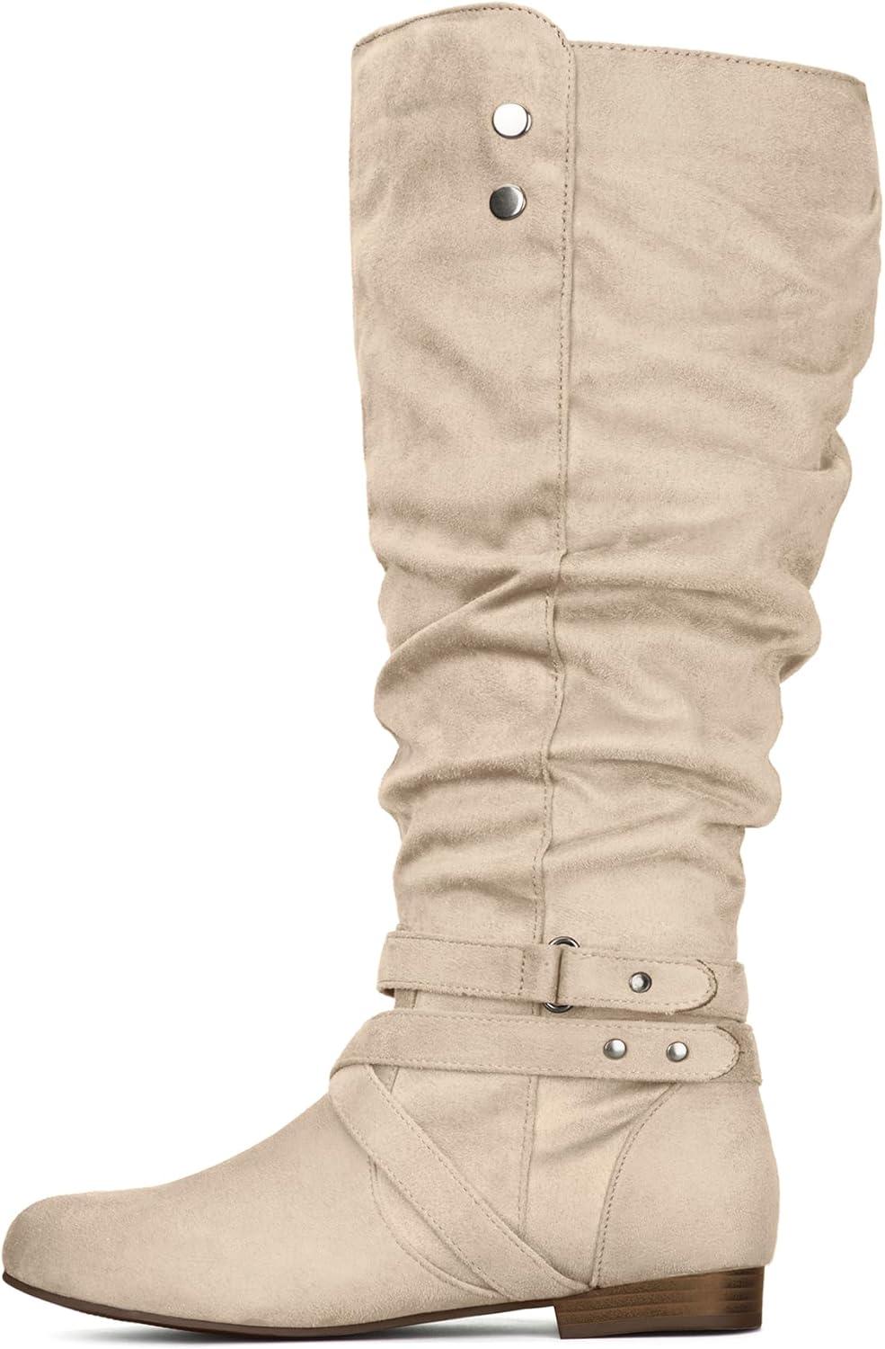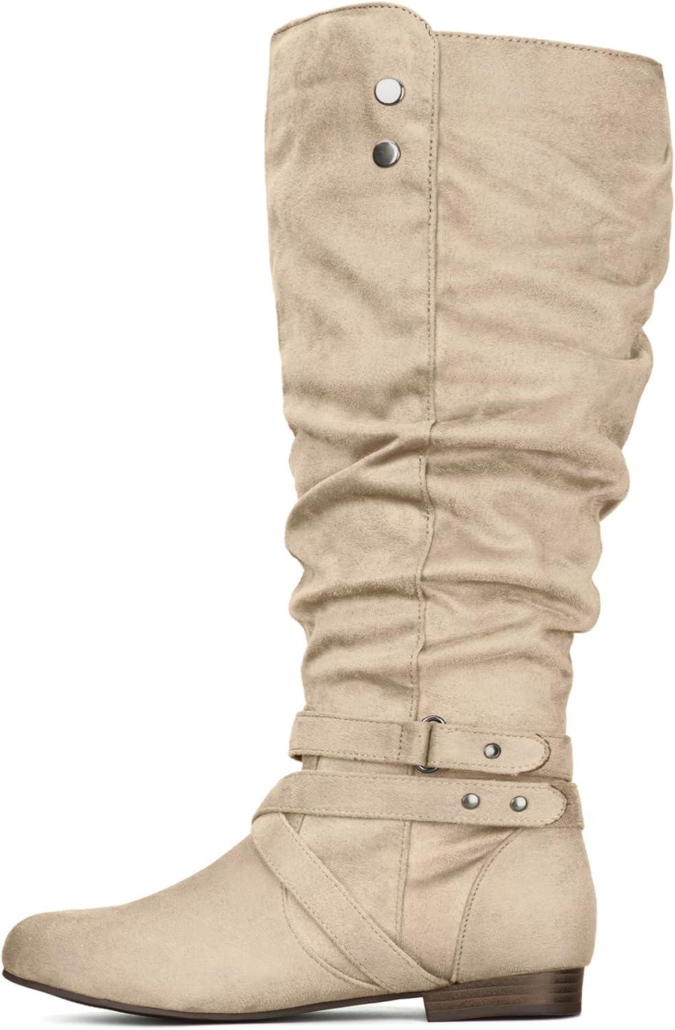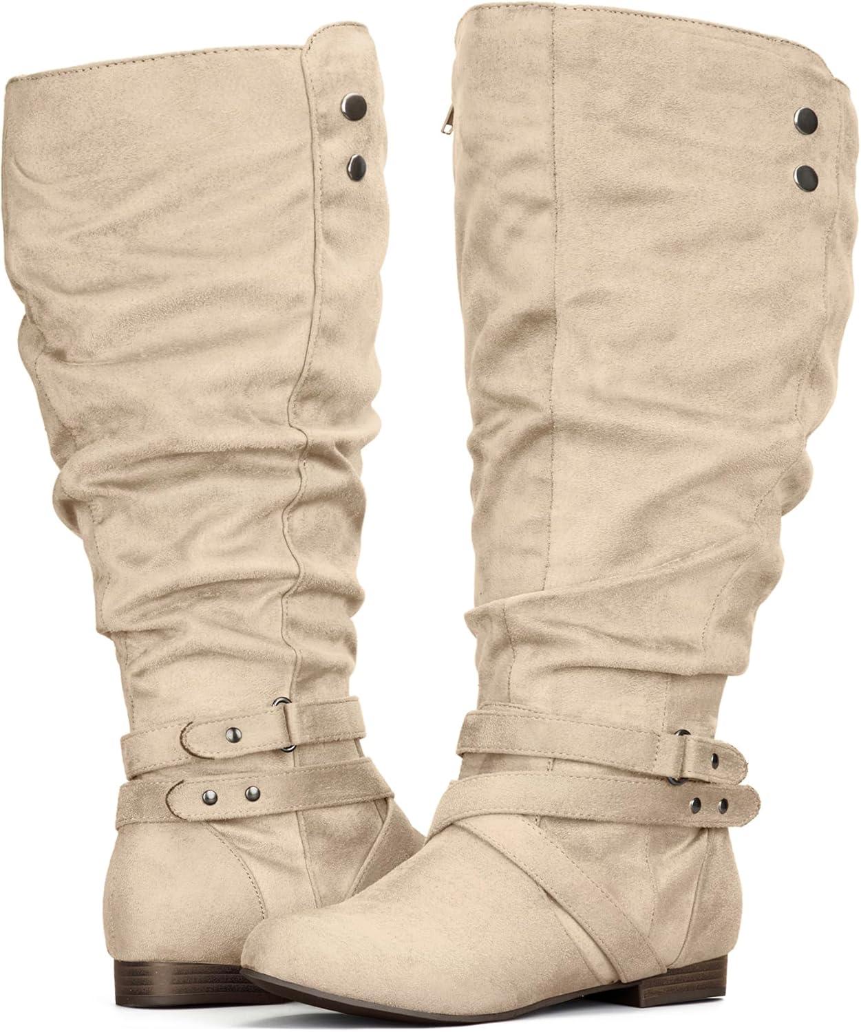 mysoft Womens Extra Wide Calf Boots Knee High Slouchy Flat Wide Width Tall Shoes Side Zippers(Beige Extra Wide Calf)