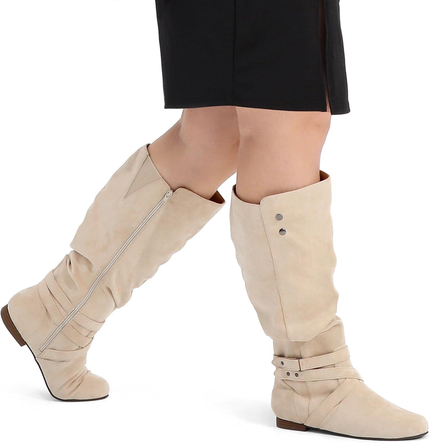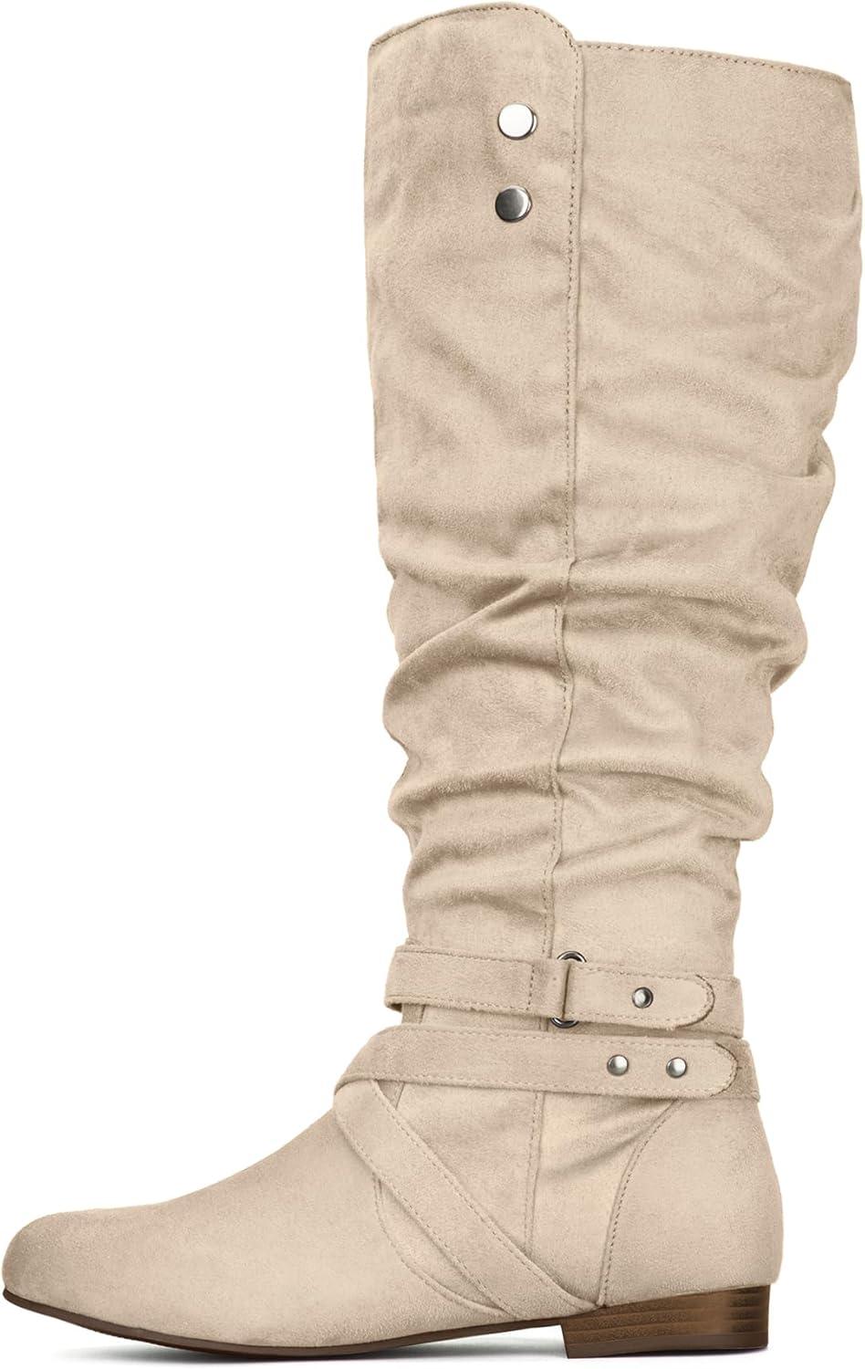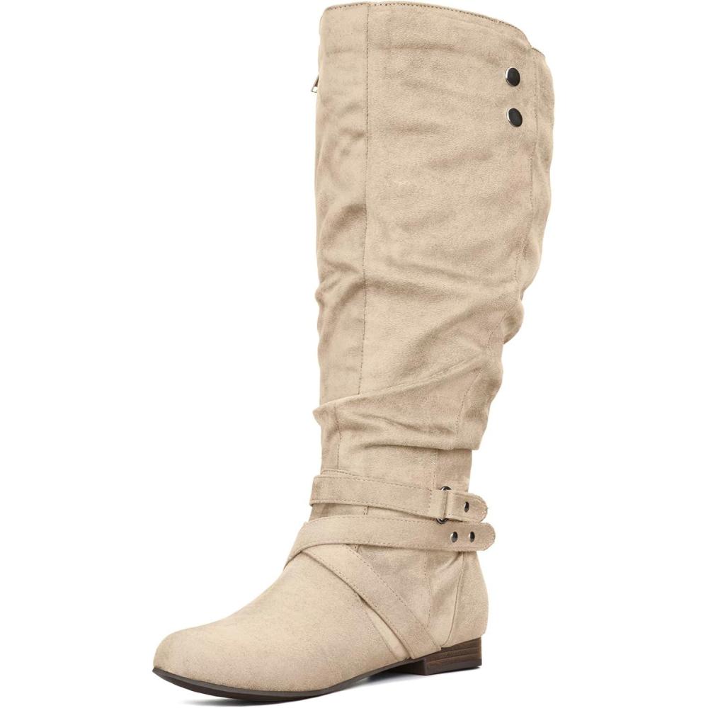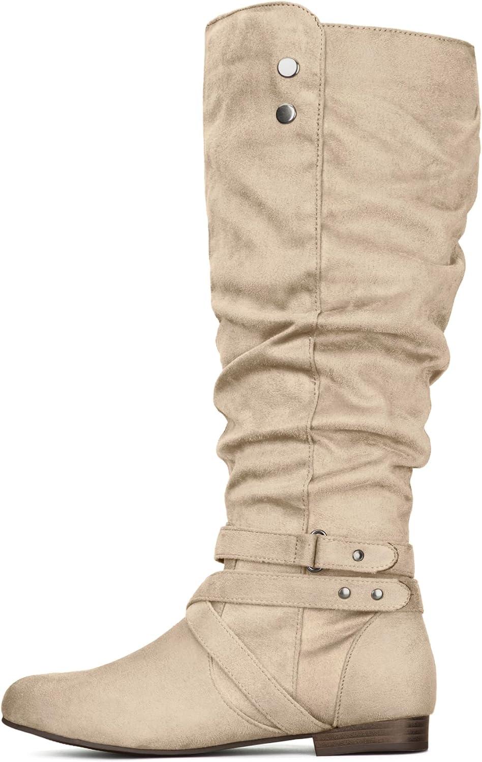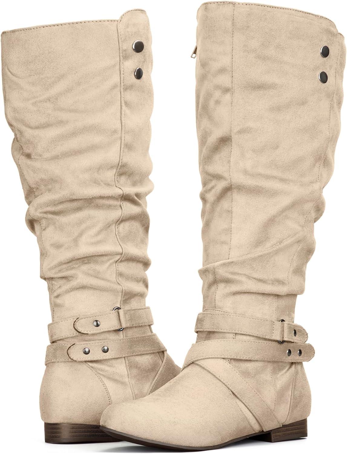 mysoft Womens Extra Wide Calf Boots Knee High Slouchy Flat Wide Width Tall Shoes Side Zippers(Beige Wide Calf)