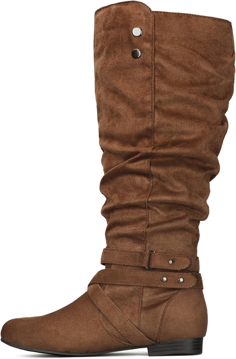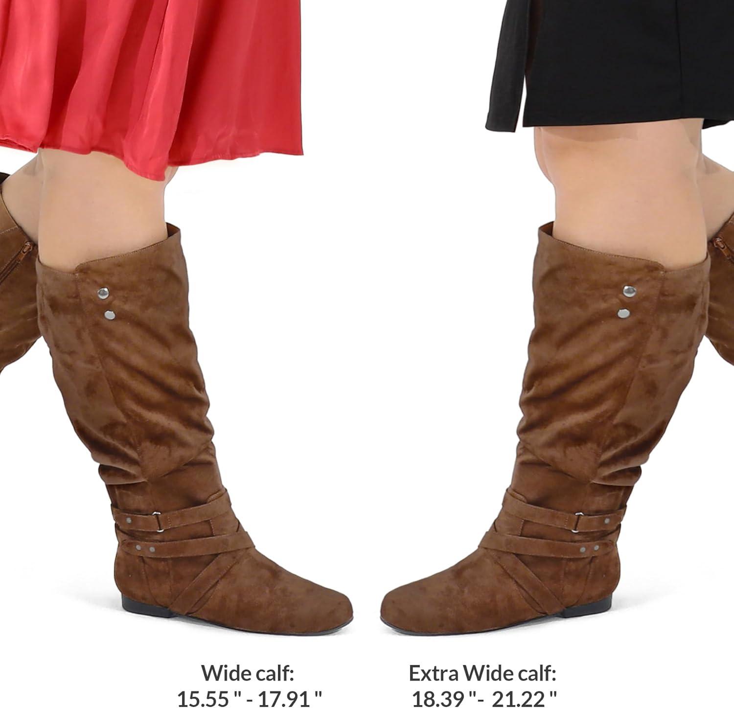 imagemysoft Womens Extra Wide Calf Boots Knee High Slouchy Flat Wide Width Tall Shoes Side ZippersDark Brown Extra Wide Calf