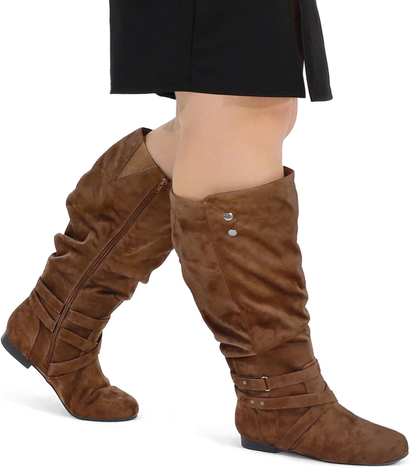 imagemysoft Womens Extra Wide Calf Boots Knee High Slouchy Flat Wide Width Tall Shoes Side ZippersBrown Extra Wide Calf