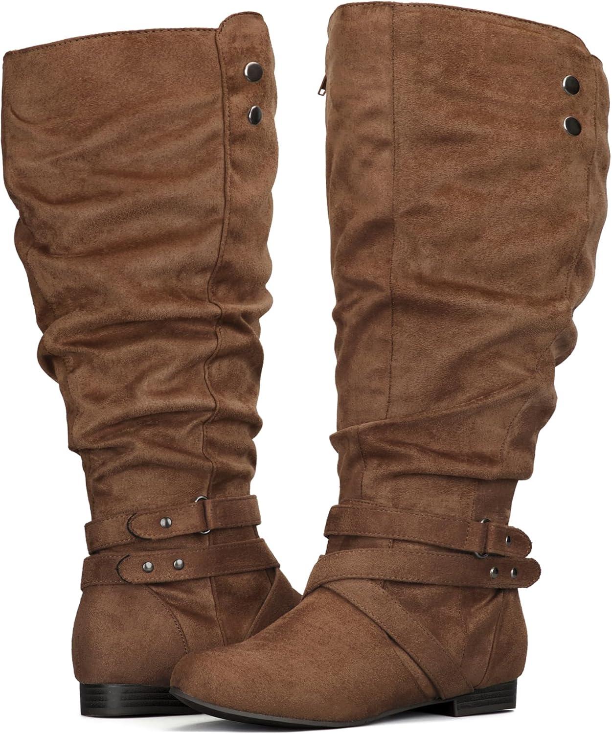 mysoft Womens Extra Wide Calf Boots Knee High Slouchy Flat Wide Width Tall Shoes Side Zippers(Brown Extra Wide Calf)