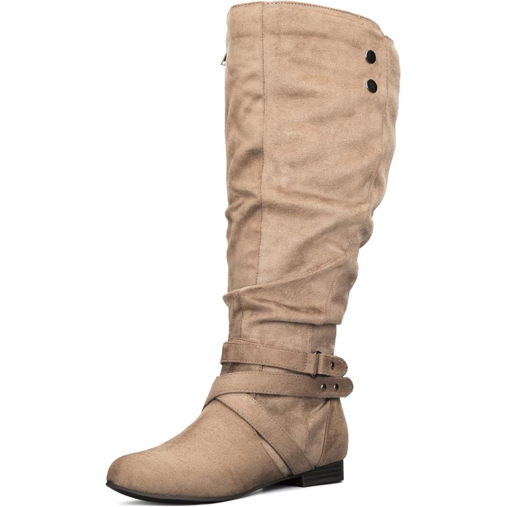 imagemysoft Womens Extra Wide Calf Knee High Slouchy BootsTaupe Wide Calf