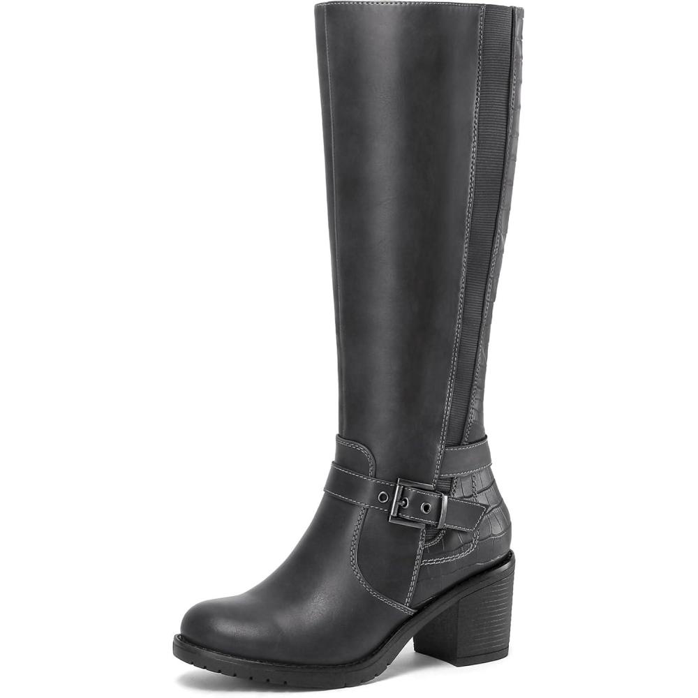 mysoft Women’s Knee High Block Heel Boots(Grey Splicing)