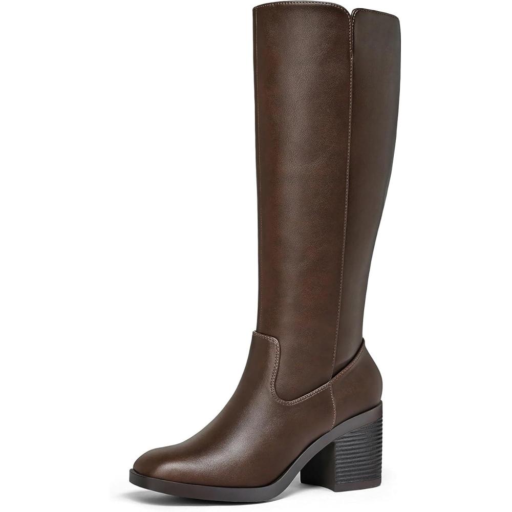 imagemysoft Womens Knee High Boots Square Toe Chunky Block Stacked Heel Tall Boots with Side ZipperDark Brown