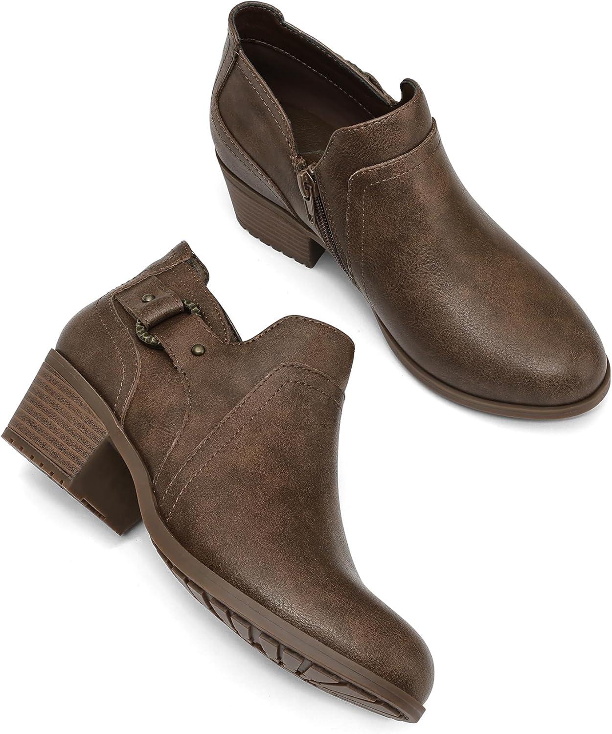 mysoft Women’s Side Zipper Ankle Boots Low Stacked Heel Chunky Booties Comfortable Round Toe shoes(Aged Brown)