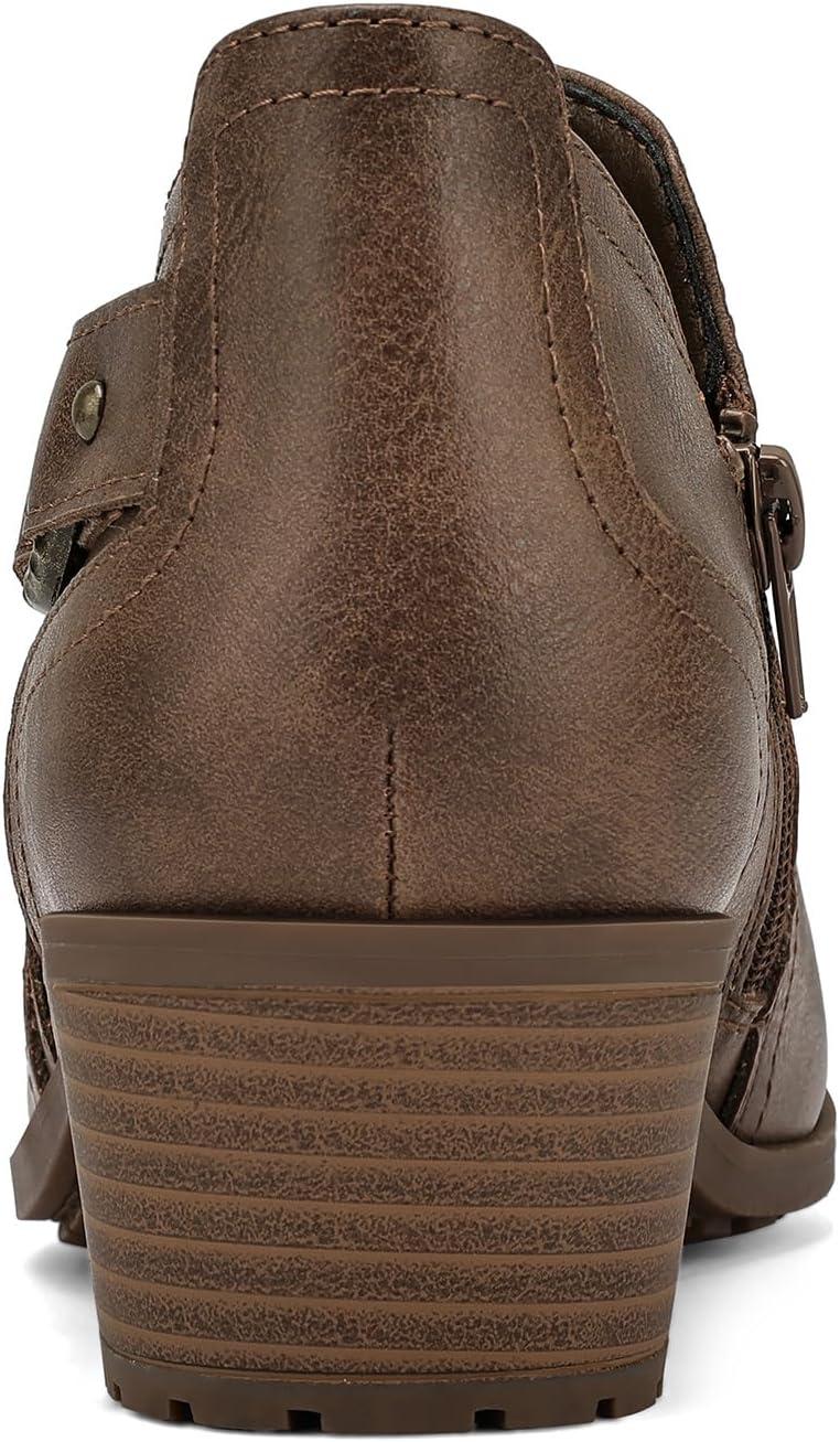 mysoft Women's Side Zipper Ankle Boots Low Stacked Heel Chunky Booties Comfortable Round Toe shoes(Aged Brown)