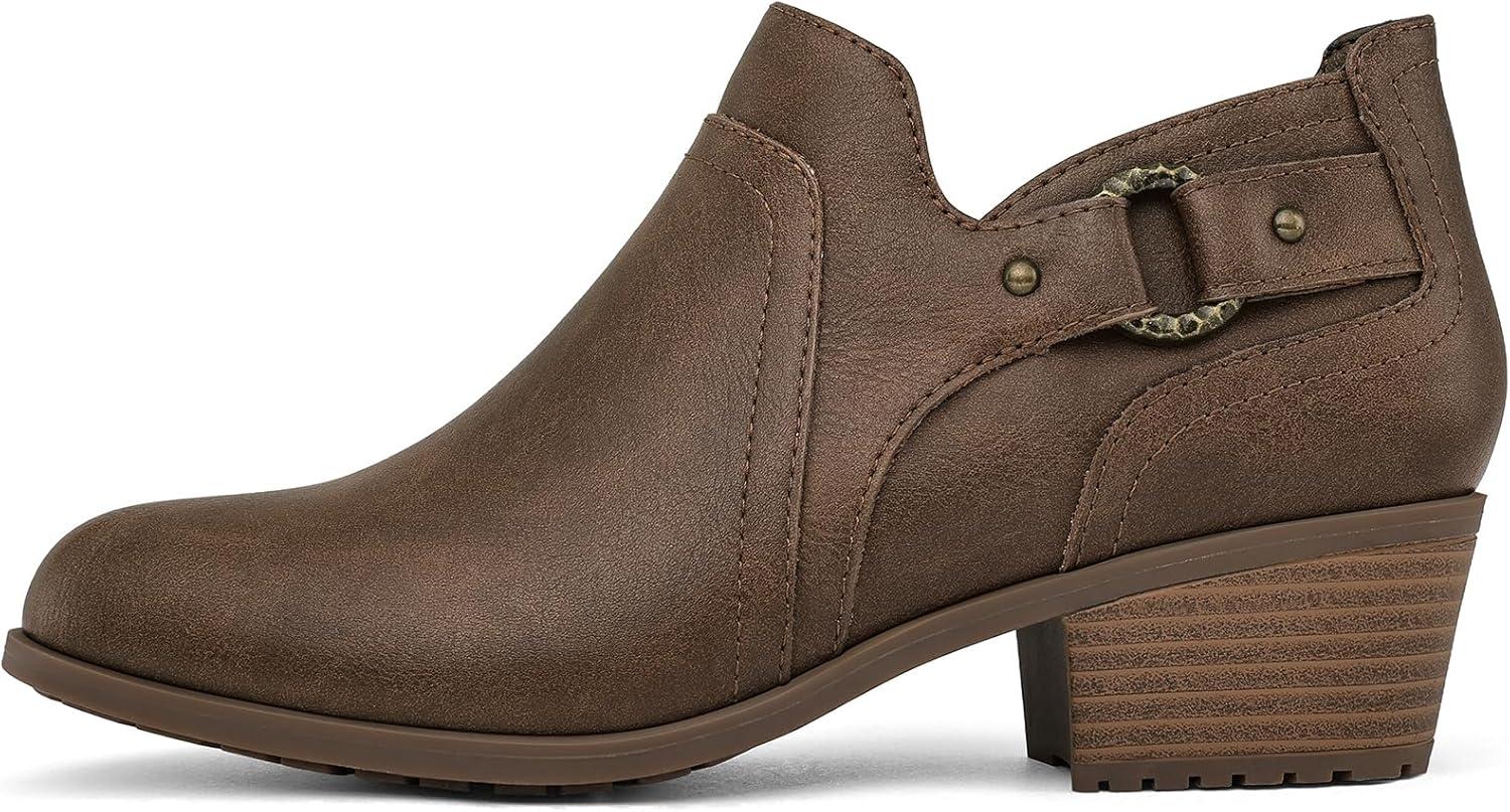 imagemysoft Womens Side Zipper Ankle Boots Low Stacked Heel Chunky Booties Comfortable Round Toe shoesAged Brown