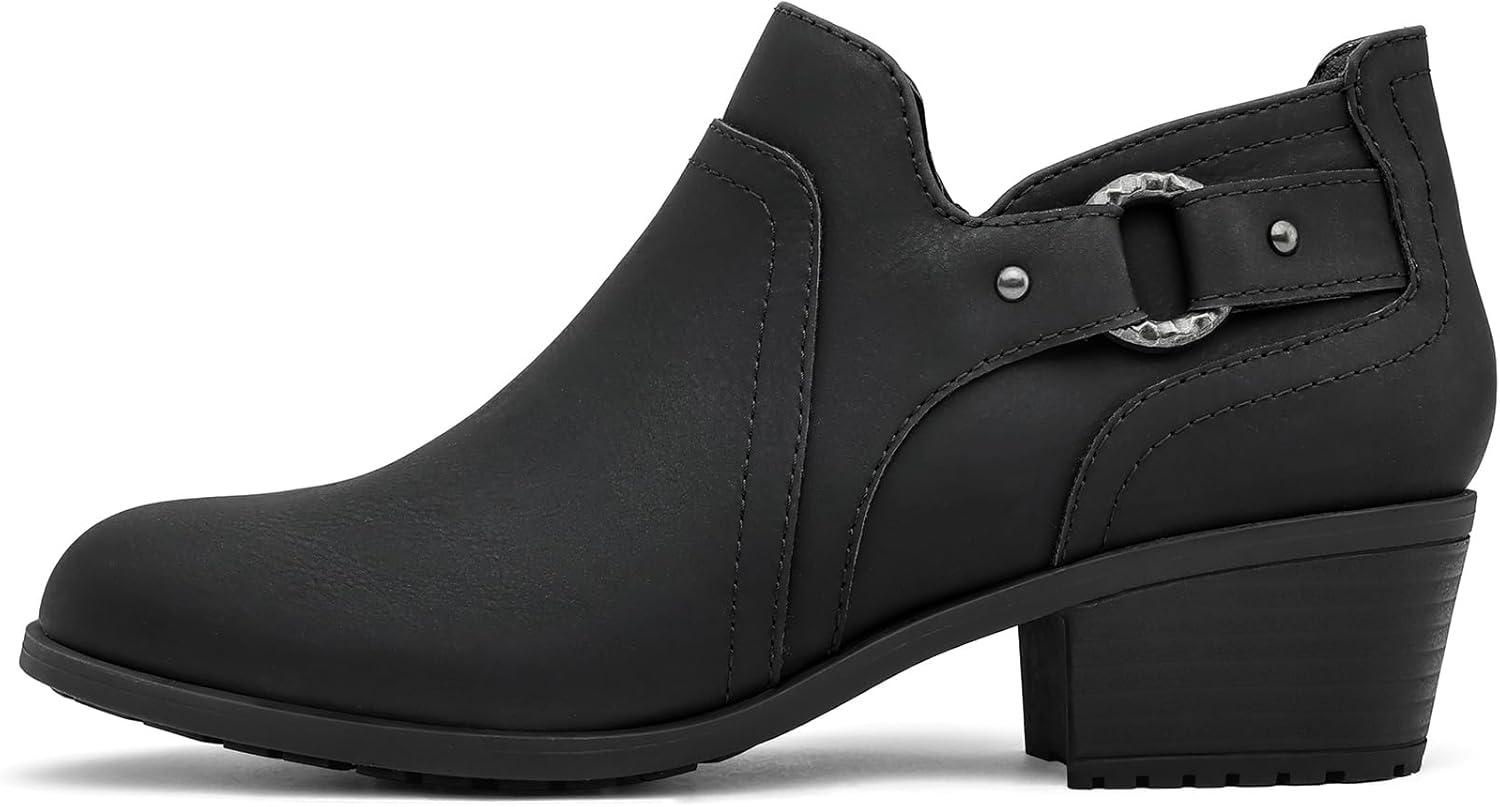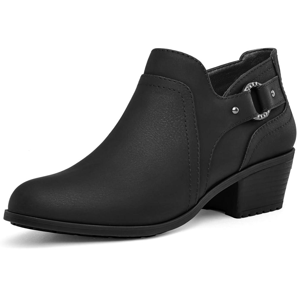 imagemysoft Womens Side Zipper Ankle Boots Low Stacked Heel Chunky Booties Comfortable Round Toe shoesBlack Pu