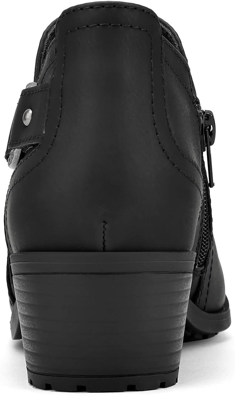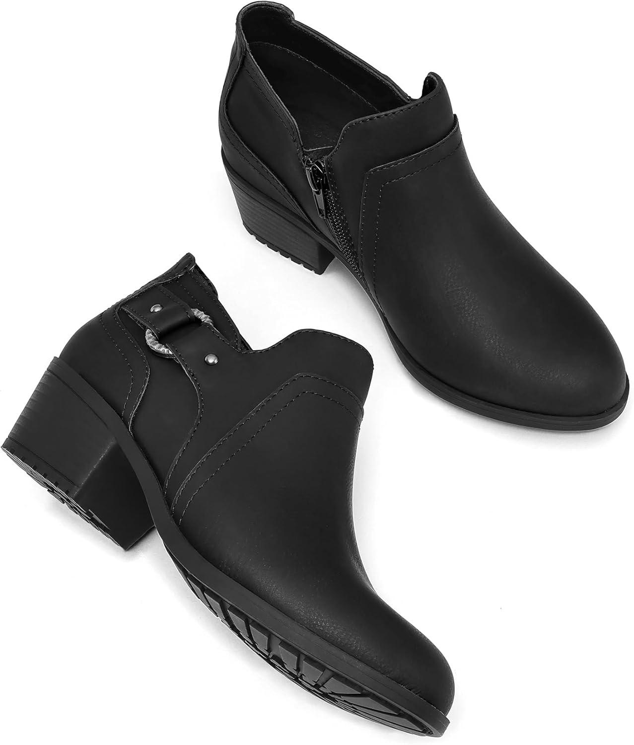 mysoft Women’s Side Zipper Ankle Boots Low Stacked Heel Chunky Booties Comfortable Round Toe shoes(Black Pu)