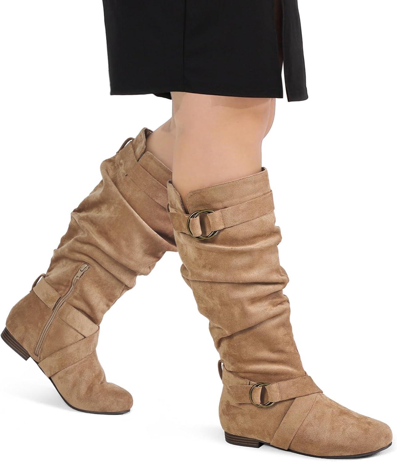 mysoft Women's Wide Calf/Extra Wide Calf Knee High Boots Slouchy Flat Tall Boots with Side Zipper(Tan Wide Calf)