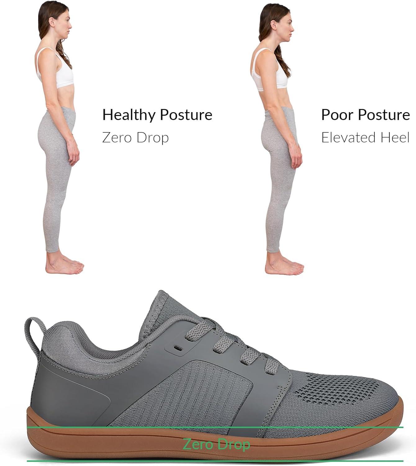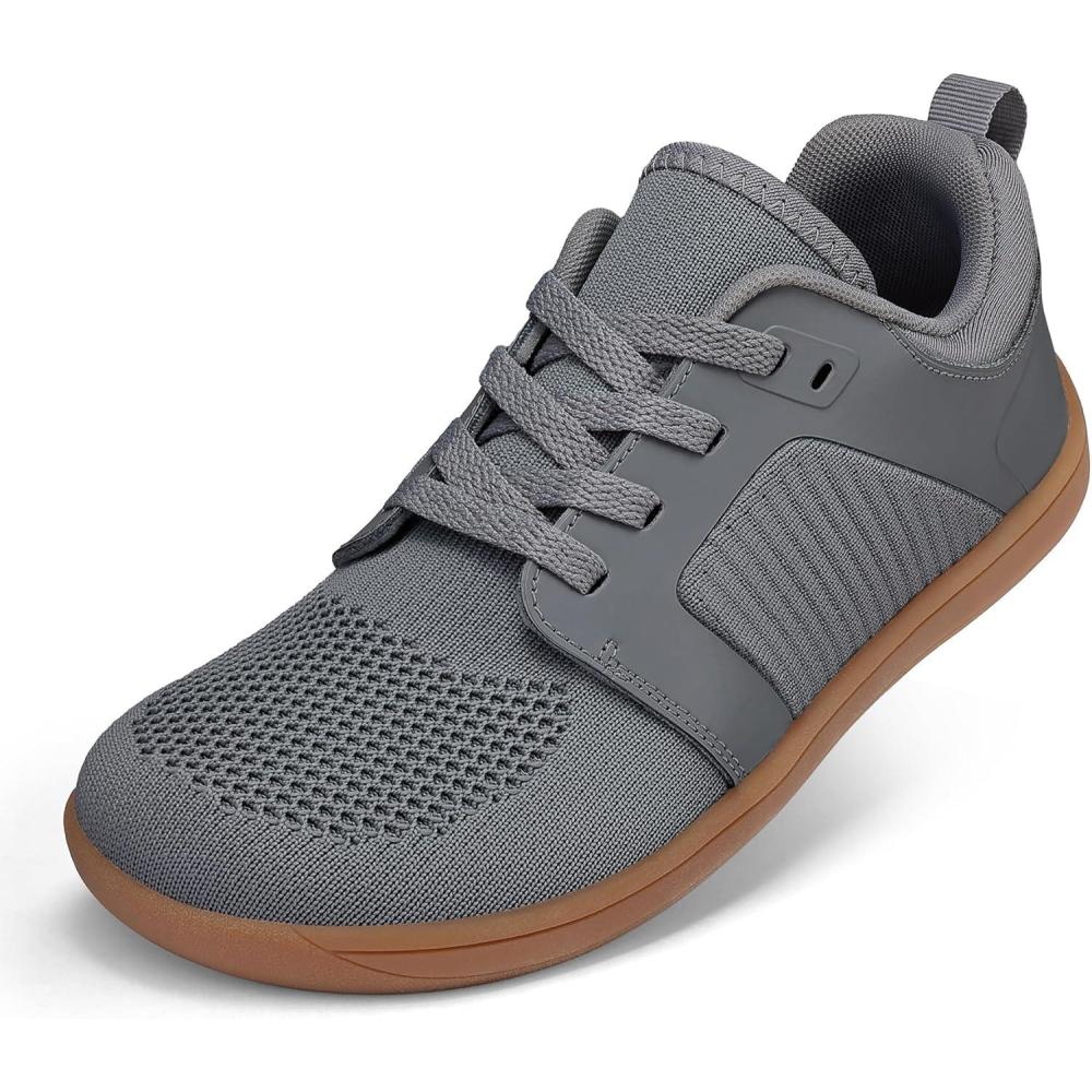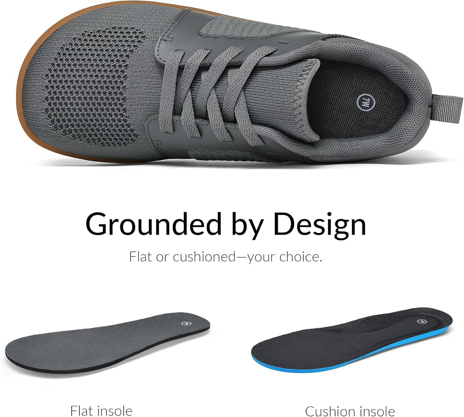 mysoft Women’s Wide Toe Box Barefoot Shoes –Zero Drop Minimalist Sneakers with Removable Insole for Bunions, Walking & Training(Dark Grey/Gum)