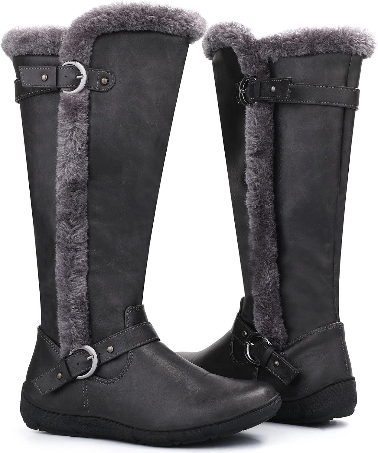 Get your hands on our exclusive mysoft Women’s Winter Knee High Boots Faux Fur Lined Zipper Tall Flat Boots(Grey) collection, now at a discounted price.